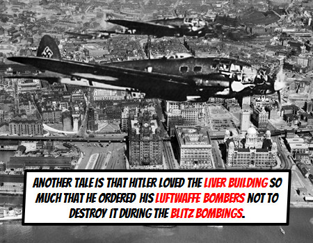 Another tale is that Hitler loved the Liver Building so much, that during the Blitz bombings he ordered his Luftwaffe bombers not to destroy it.