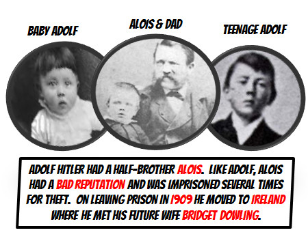 Alois had a bad reputation and spent many years in prison for theft. He left prison in 1909 and moved to Ireland. Here he met his future wife Bridget Dowling.