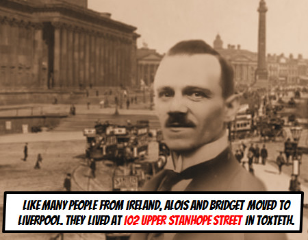 Alois and Bridget moved from Ireland to Liverpool. They moved to 102 Upper Stanhope Street in Toxteth.