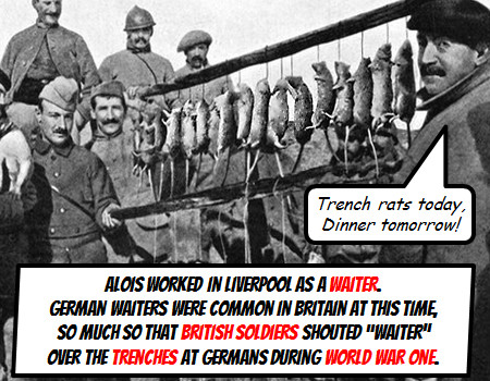Alois worked in Liverpool as a waiter. German waiters were common in Britain at this time. So much so that during World War One, British soldiers shouted “Waiter” over the trenches at Germans.