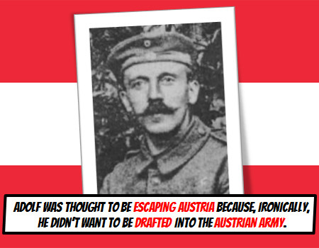 It is thought that Adolf was escaping Austria because he didn’t want to be drafted into their army.